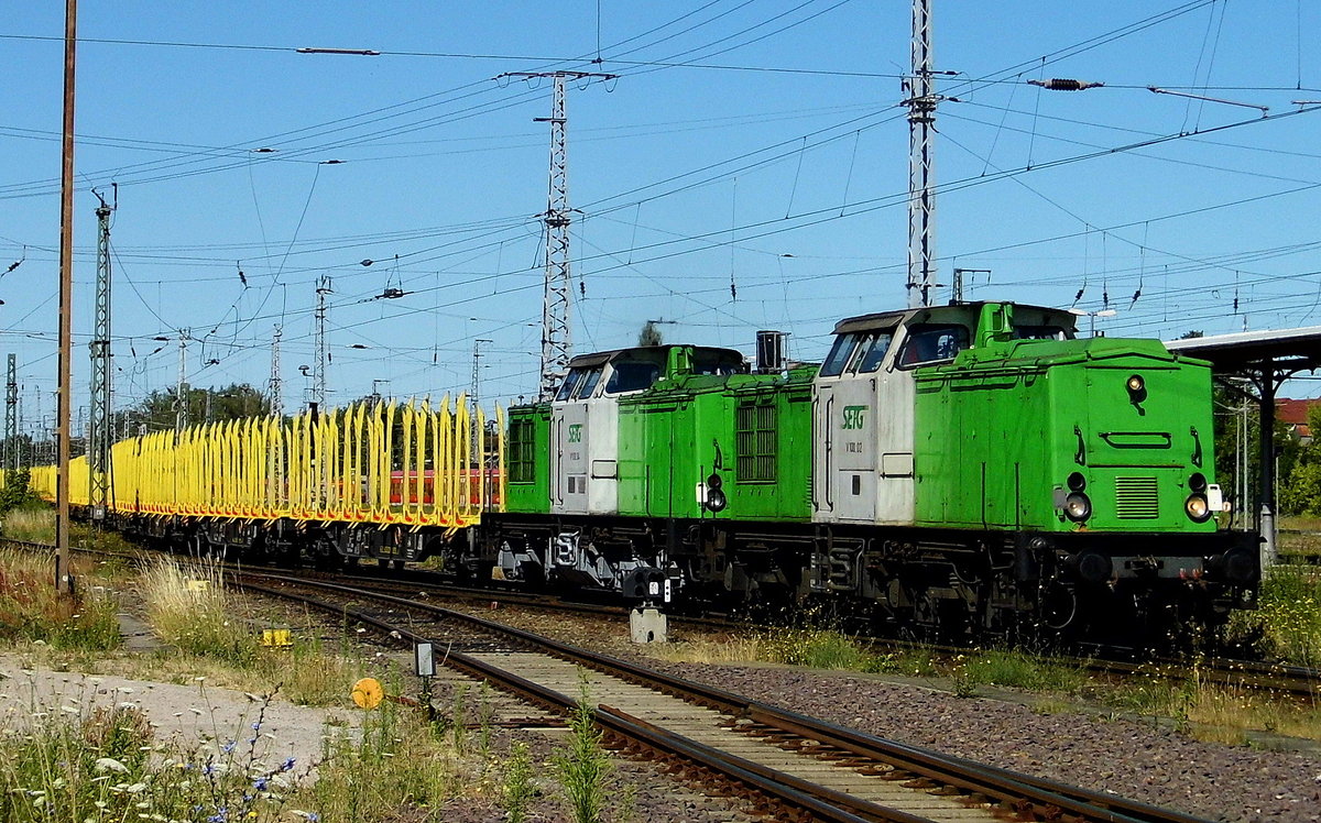 Am 01.07.2018 kamen von der 202 787-8 und die 202 287-9 von der SETG - Salzburger Eisenbahn TransportLogistik GmbH, von Niedergören nach Stendal . (zum Bild)